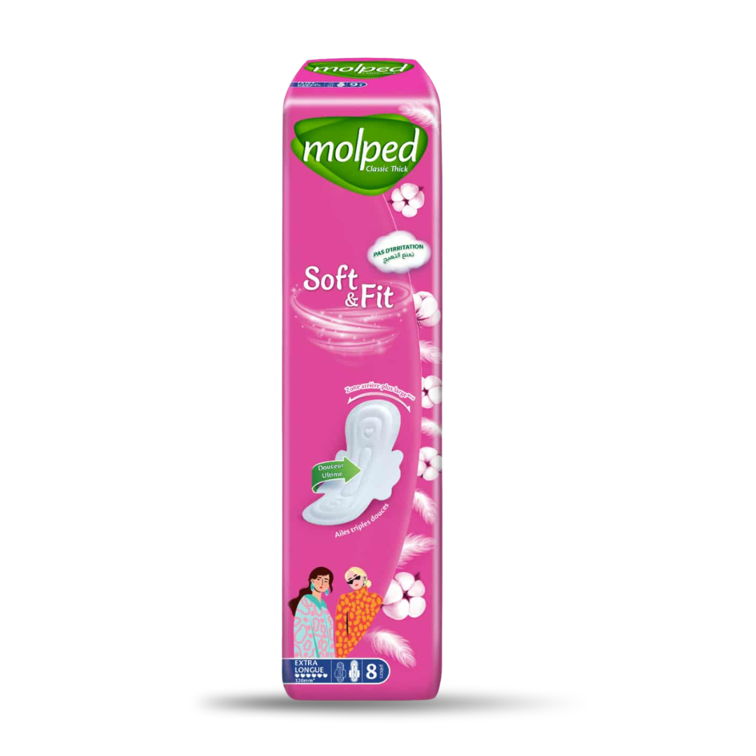 Serviettes Hygiénique Soft & Fit extra longues (08 Pièces).